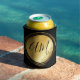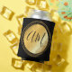 Gold metal round frame, personalised monograms, golden metallic effect, chic minimal design, calligraphy initial letters of name