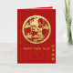Golden Chinese paper-cut of a tiger (model n°7) drinking at the river into a circle + Happy New Year in Chinese and English, Year of the tiger and large 2022. Design on vertical greeting card with red background. You can easily change background colour and year (font,colour, size and position) by clicking the customise button. Matching postcard. Perfect for a modern and timeless Chinese New Year of the Tiger 2022. ----- "The Tiger (寅) is one of the 12-year cycle of animals which appear in the Chinese zodiac related to the Chinese calendar. The Year of the Tiger is associated with the Earthly Branch symbol 寅. (...) People born within these date ranges can be said to have been born in the "Year of the Tiger", while also bearing the following elemental sign: