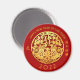 Golden Chinese paper-cut of double tigers + flowers (model n°2) into a circle + small Chinese Tiger ideogram + Happy New Year in Chinese and English and large 2022. Design on round magnet with red background. You can easily change background colour and year (font, colour, size and position) by clicking the customise button. Matching greeting card and postcard. Perfect for a modern and timeless Chinese New Year of the Tiger 2022.