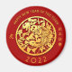 Golden Chinese paper-cut of a tiger + Fu ideogram (model n°10) into a circle + small Chinese Tiger ideogram + Happy New Year in Chinese and English and large 2022. Design on round magnet with red background. You can easily change background colour and year (font, colour, size and position) by clicking the customise button. Matching greeting card and postcard. Perfect for a modern and timeless Chinese New Year of the Tiger 2022.