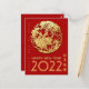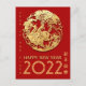 Golden Chinese paper-cut of two young tigers (model n°3) into a circle  + Happy New Year in Chinese and English, Year of the tiger and large 2022. Design on vertical basic postcard with red background. You can easily change background colour and year (font,colour, size and position) by clicking the customise button. Matching greeting card. Perfect for a modern and timeless Chinese New Year of the Tiger 2022. ----- "The Tiger (寅) is one of the 12-year cycle of animals which appear in the Chinese zodiac related to the Chinese calendar. The Year of the Tiger is associated with the Earthly Branch symbol 寅. (...) People born within these date ranges can be said to have been born in the "Year of the Tiger", while also bearing the following elemental sign: