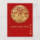 Golden Chinese paper-cut of double tigers (model n°2) into a circle  + Happy New Year in Chinese and English, Year of the tiger and large 2022. Design on vertical holiday postcard with red background. You can easily change background colour and year (font,colour, size and position) by clicking the customise button. Available with other Tiger paper-cut. Matching greeting card. Perfect for a modern and timeless Chinese New Year of the Tiger 2022. ----- "The Tiger (寅) is one of the 12-year cycle of animals which appear in the Chinese zodiac related to the Chinese calendar. The Year of the Tiger is associated with the Earthly Branch symbol 寅. (...) People born within these date ranges can be said to have been born in the "Year of the Tiger", while also bearing the following elemental sign: