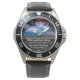 My husband loves the watch, he likes the dial, the graphics, the band, and it keeps perfect time.