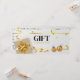 Festive glamourous high quality holiday design featuring luxury gold gift box, bow and ribbon with golden stars and Christmas tree ball on a simple plain light grey ombre background. This elegant and modern gift certificate is perfect for your small business or to gift friends and family, especially for Christmas holiday time.