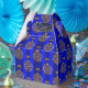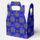 A festive Christmas gift box featuring a pattern of gold Christmas baubles with golden bows, over a royal blue background to add a touch of elegance to your Christmas gift giving this holiday season.