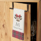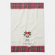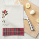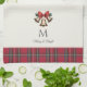 stylish red black tartan,rustic christmas custom monogram,personalised customised kitchen towel,personal name check pattern,scottish checked chequered dishcloth,add your own royal text,merry xmas family surname,fancy plaid initialled initial,classic traditional golden bells,christmassy xmasy british bell