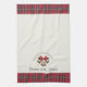 stylish red black tartan,rustic christmas custom monogram,personalised customised kitchen towel,personal name check pattern,scottish checked chequered dishcloth,add your own royal text,merry xmas family surname,fancy plaid initialled initial,classic traditional golden bells,christmassy xmasy british bell