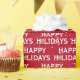 Happy Holidays text with gold foil Christmas bow on red background with snowflakes.