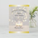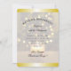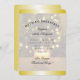Christmas wedding breakfast invitation with gold colour borders and reverse. A sparkling tree and candle image is the background for modern typography with curved text "wedding breakfast" at the top. Below, invite special guests to dine with the newlyweds and wish them "bon voyage" on their honeymoon.