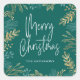 Gold Christmas Greenery on Dark Teal Holiday Square Sticker