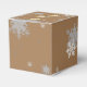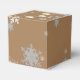 Package gift favours this holiday season with a Gold Christmas Ornaments Favour Box. Favour box design features a trio of hanging Christmas ornaments with falling snowflakes and a dark gold background. Additional gift and holiday items available with this design as well.