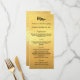 Christmas party dinner menu card. Personalise and add a name/event, date and the menu. A faux gold looking background, black text.
