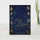 Gold Christmas Pine Tree,Branches Blue Bokeh Holiday Card