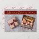 Gold Christmas Present on Snowy Deck Photo Holiday Card