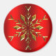 Gold Christmas Star Snowflake on Red Christmas Magnet