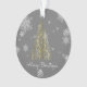 Decorate your tree this holiday season with a Gold Christmas Tree and Snowflakes Ornament. Ornament design features a vibrant artistic Christmas tree with falling snowflakes and a dark grey background. Additional gift and holiday items available with this design as well.