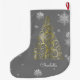 Add a festive touch to your fireplace mantle this holiday season with a Gold Christmas Tree and Snowflakes Stocking. Stocking design features a vibrant artistic Christmas tree with falling snowflakes and a dark grey background with a space you can add your name for personalisation. Additional gift and holiday items available with this design as well.