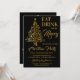 Black and Gold Christmas or Holiday Party invitation. Elegant gold Christmas tree with a black background with gold print, and can be customised.
