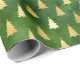 Gold Christmas Trees on Green Wrapping Paper