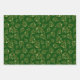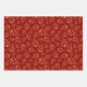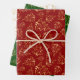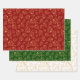 Gold Christmas Trees on Red, Green, White Wrapping Paper Sheet