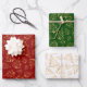 These elegant and glamourous wrapping paper sheets are versatile and can be used for giving gifts or art and craft projects. The design features gold Christmas trees on a red, green and white background. Perfect for Christmas and the holiday season.