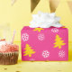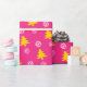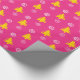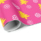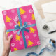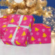 Gold Christmas trees and white snow flakes on Fuchsia Wrapping Paper.