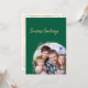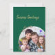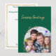 This simple Season's Greetings Card has a gold circle on a warm green background with small green leaves and red berries for holding your Christmas photo. There is space to provide your own Christmas greeting and space on the back to include your own Christmas greeting either printed or hand written.
