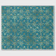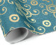 Small gold circles with swirly arms coming off each one and all on a teal background. Perfect for decoupage, crafts, or gift wrapping. Please check out the "seam" view to make sure its acceptable.