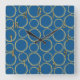 Gold Circles & Bright Blue Modern Trendy Chic Square Wall Clock