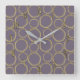 Gold Circles & Rustic Taupe Purple Modern Chic Square Wall Clock