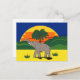 This cute design features a brown elephant standing in front of a palm tree between green mountains. Shown on a postcard you can transfer the design to other products like mugs, coasters and other fashionable accessories. This is the vintage motif that appeared alongside the British Union Jack on the flag of the Gold Coast British Ghana, 1877-1957, prior to UK independence in 1957. The same design featured on the flags of the former British Colonies of Gambia, Lagos, Sierra Leone and the West Africa Settlements.