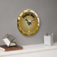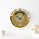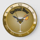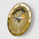 A modern clock with a gold dial and a matching gold martini glass with a straw and a slice of orange is featured in the center. The words, Cocktail Hour, are included in bold print within the clock face. Great for a bar, kitchen, or entertainment area.