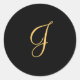Gold-coloured initial J on black monogram heart-shaped sticker.