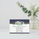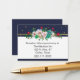 Stylish navy blue and white wedding reception information enclosure card, with graphics of gold confetti dots and pretty colourful flowers, at the top. Personalise the text to suit your needs. Matching wedding products are available.