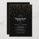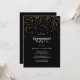 This gold confetti | black engagement party invitation is perfect for a simple, classy event. The elegant whimsical design features faux gold glitter confetti and minimalist calligraphy on black with a modern boho feel.