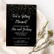 This gold confetti|black we're getting married wedding gold foil invitation is perfect for a simple, elegant wedding. The design features real gold foil glitter confetti with raised texture, on a black background with chic contrasting white calligraphy. QSD111
