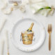 stylish and fun, these paper plates are perfect for your New Year's Eve party celebration. The design features gold confetti, a champagne bottle in a gold bucket, and the text "Cheers to the New Year!"