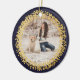 A festive ornament featuring circular gold overlapping confetti ring with a navy blue border and customer photo on front. The back has an area for text including family name and year. This is perfect for gift giving season or adding a commemorative keepsake to your own tree. Great for newborns, newlyweds, graduates, kids, families and pets.