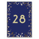 Vintage elegant gold and navy wedding table number cards with confetti dots