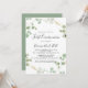 This gold confetti eucalyptus foliage first communion invitation is perfect for a rustic religious event. The design features watercolor eucalyptus green foliage with gold confetti.