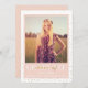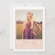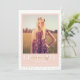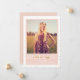 Modern gold confetti layers behind a blush colour block framing the graduate's photo and details on this fun, chic, and sophisticated graduation announcement.