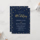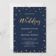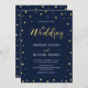 Celebrate your special day with this stylish modern wedding invitation. This design features chic gold typography and simple gold confetti on a navy blue background. More wedding invitations and party supplies are available at my shop BaraBomDesign.