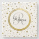 Add your custom name and initial to this pretty, light airy and feminine gold and silver confetti background print pattern design. Circular round shape with a faux gold leaf border and your single letter initial and name.