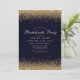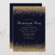 Gold Confetti Navy Blue Modern Bachelorette Invitation