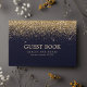 Gold Confetti Navy Blue Modern Wedding Guest Book