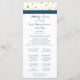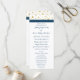 Custom wedding program in dark navy blue and white with gold confetti and hand lettered style text. Customise these order of ceremony cards with your own text.