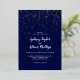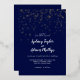 This gold confetti|navy casual wedding gold foil invitation is perfect for a simple, elegant wedding. The design features real gold foil glitter confetti with raised texture, on a navy blue background with classy white calligraphy. QSD111