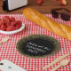 This Gold Confetti on Black Engagement Party paper plate is perfect for an elegant engagement party. The design features faux gold confetti on a black background with classy white calligraphy. Personalise the plates with the names of the couple.