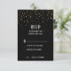 This classy Gold Confetti on Black Wedding RSVP card is perfect for a simple and elegant wedding. The design features faux gold confetti on a black background with white calligraphy. It co-ordinates perfectly with the Gold Confetti on Black Wedding Invitation.