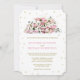 A very pretty gold confetti with pink roses and baby's breath invitation.